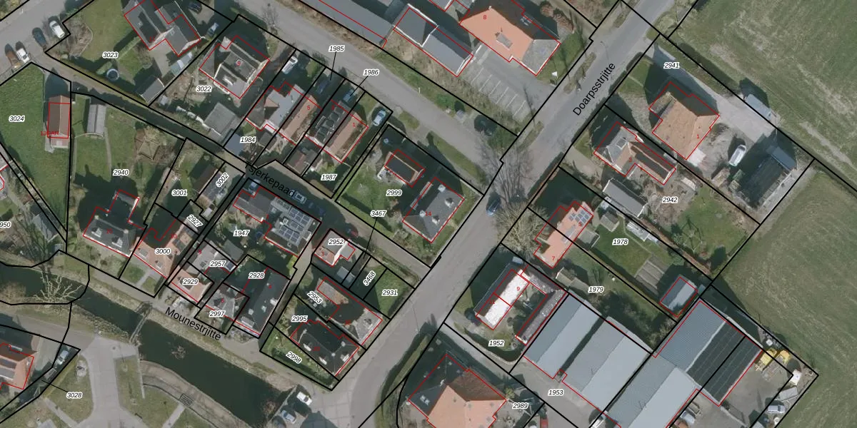 Het perceel waarop Doarpsstrjitte 14 staat heeft een oppervlakte van 591 m². Dit is een groot perceel. De perceeloppervlakte wordt geregistreerd door het Kadaster. Gedetailleerde informatie over de maten van dit perceel kunt u vinden in het rapport Kadastrale kaart met maatvoering van Doarpsstrjitte 14.