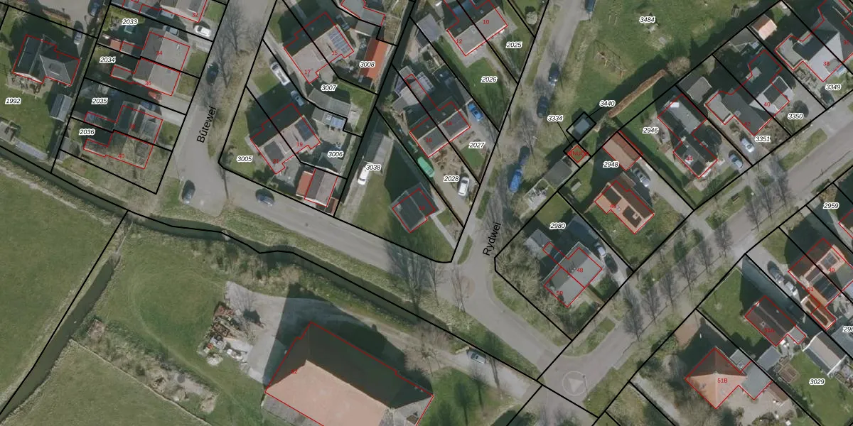 Het perceel waarop Rydwei 18 staat heeft een oppervlakte van 563 m². Dit is een groot perceel. De perceeloppervlakte wordt geregistreerd door het Kadaster. Gedetailleerde informatie over de maten van dit perceel kunt u vinden in het rapport Kadastrale kaart met maatvoering van Rydwei 18.