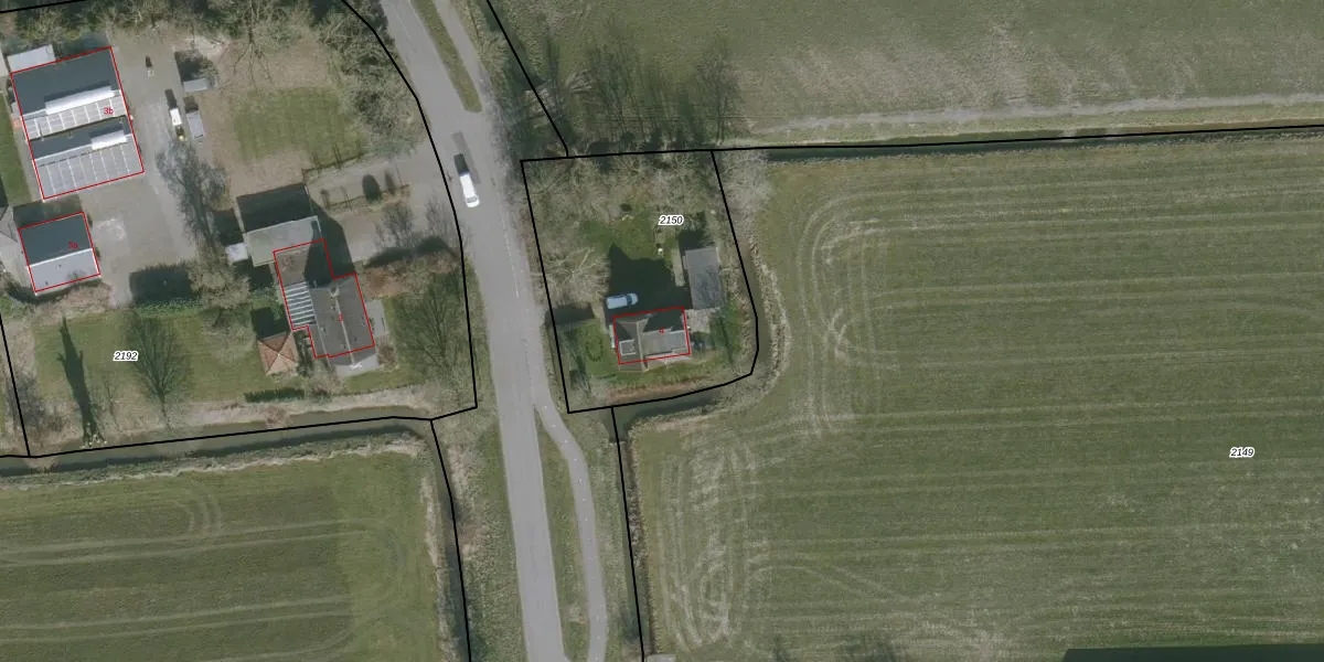 Het adres is gelegen op perceel 2150 in de sectie F en de kadastrale gemeente Oosterend. De kadastrale aanduiding is aldus OTE00-F-2150. Het perceel is 1095 m² groot. Dat is kleiner dan de gemiddelde perceeloppervlakte in Oosterend, dat op 1,2 ha ligt. Het grootste perceel in de kadastrale gemeente is 20,6 ha. Het kleinste perceel heeft een oppervlakte van 0 m². Dit is het enige adres dat aanwezig is op het perceel. De huidige grenzen van het perceel zijn digitaal in de Basisregistratie Kadaster (BRK) geregistreerd op 12-01-2018.