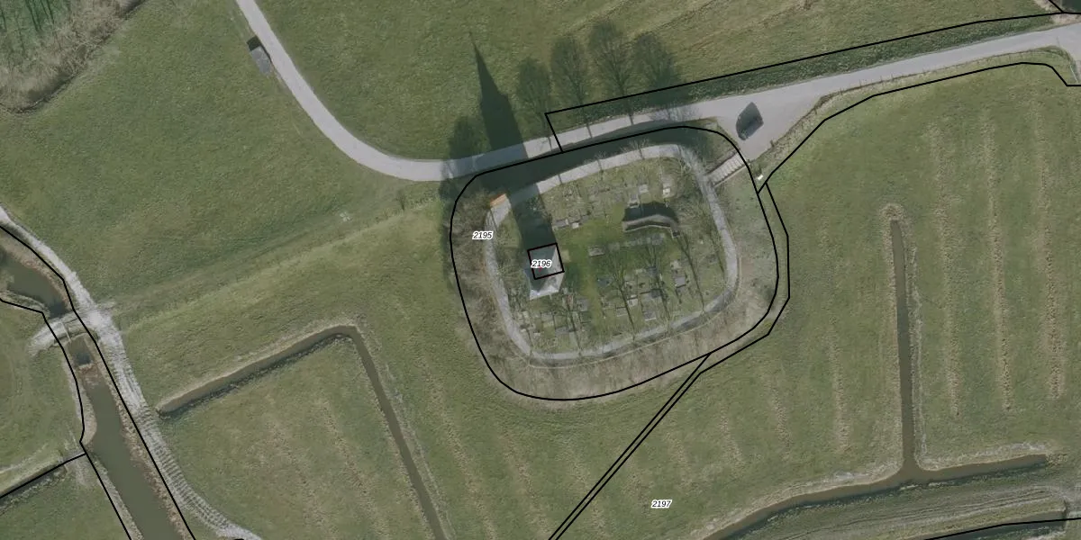 Het adres is gelegen op perceel 2196 in de sectie F en de kadastrale gemeente Oosterend. De kadastrale aanduiding is aldus OTE00-F-2196. Het perceel is 30 m² groot. Dat is kleiner dan de gemiddelde perceeloppervlakte in Oosterend, dat op 1,2 ha ligt. Het grootste perceel in de kadastrale gemeente is 20,6 ha. Het kleinste perceel heeft een oppervlakte van 0 m². Er zijn geen andere adressen aanwezig op het perceel. De huidige grenzen van het perceel zijn digitaal in de Basisregistratie Kadaster (BRK) geregistreerd op 12-01-2018.
