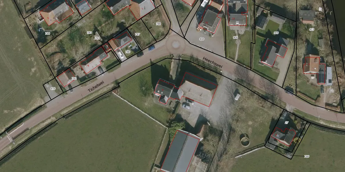 Het perceel waarop Heechswei 8 staat heeft een oppervlakte van 4,1 ha. Dit is een zeer groot perceel. De perceeloppervlakte wordt geregistreerd door het Kadaster. Gedetailleerde informatie over de maten van dit perceel kunt u vinden in het rapport Kadastrale kaart met maatvoering van Heechswei 8.