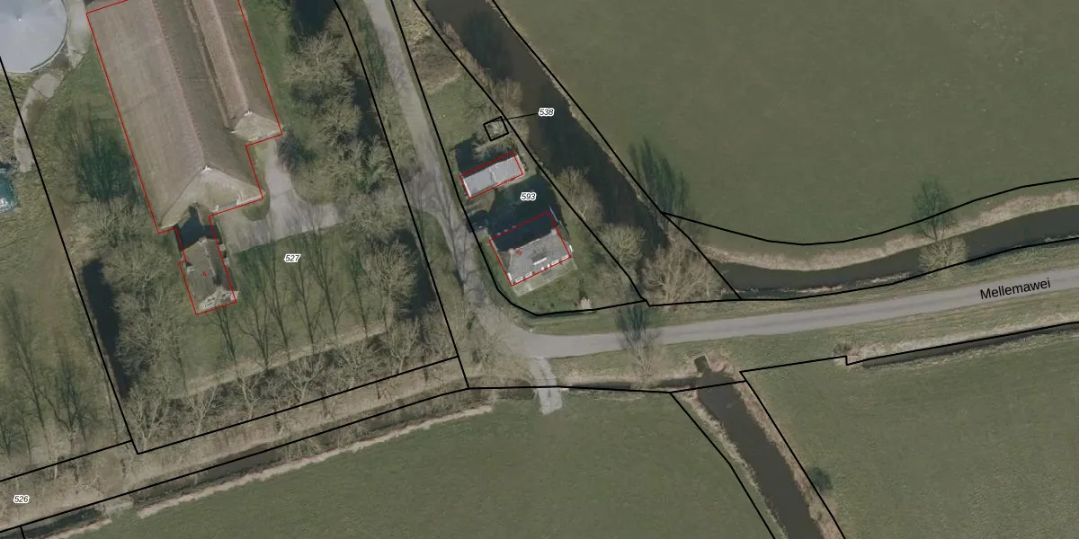 Het perceel waarop Mellemawei 5 staat heeft een oppervlakte van 941 m². Dit is een groot perceel. De perceeloppervlakte wordt geregistreerd door het Kadaster. Gedetailleerde informatie over de maten van dit perceel kunt u vinden in het rapport Kadastrale kaart met maatvoering van Mellemawei 5.