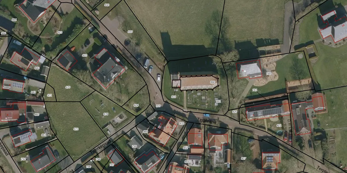 Terpleane 11 is gelegen op kadastraal perceel EEX00H833. Deze kadastrale aanduiding is uniek en wordt gebruikt door het Kadaster om eigendomsrechten en andere zakelijke rechten vast te leggen. Het perceel maakt onderdeel uit van de kadastrale gemeente Ee.