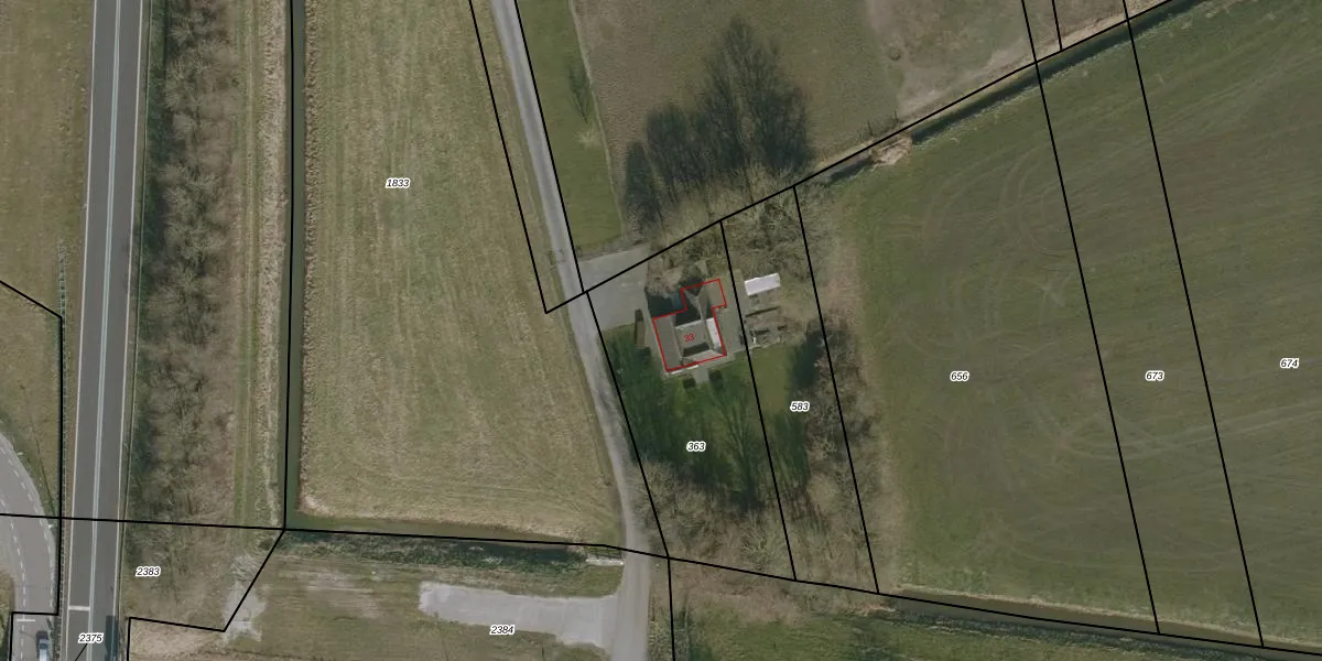 Het adres is gelegen op perceel 363 in de sectie G en de kadastrale gemeente Ee. De kadastrale aanduiding is aldus EEX00-G-363. De gemiddelde perceelgrootte in Ee is 1,0 ha. Dit perceel is kleiner: de perceeloppervlakte bedraagt 1000 m². Het grootste perceel in de kadastrale gemeente is 24,3 ha. Het kleinste perceel heeft een oppervlakte van 1 m². Er zijn geen andere adressen aanwezig op het perceel. In de Basisregistratie Kadaster (BRK) werden de grenzen van het perceel geregistreerd op 15-01-1998.