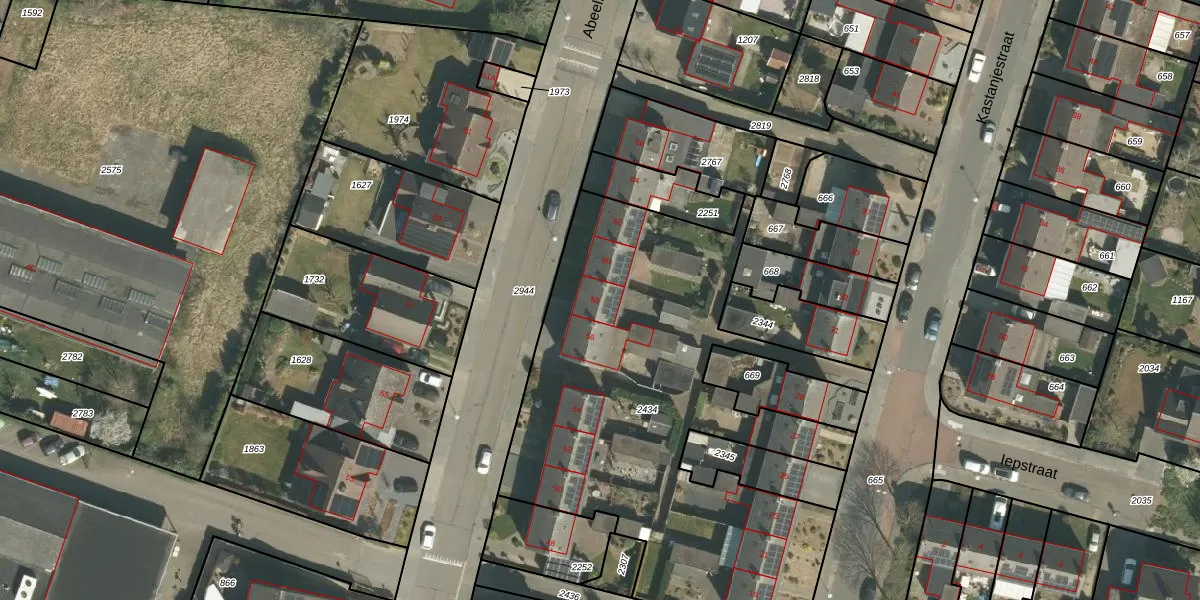 Het perceel waarop Abeelstraat 58 staat heeft een oppervlakte van 2408 m². Dit is een zeer groot perceel. De perceeloppervlakte wordt geregistreerd door het Kadaster. Gedetailleerde informatie over de maten van dit perceel kunt u vinden in het rapport Kadastrale kaart met maatvoering van Abeelstraat 58.