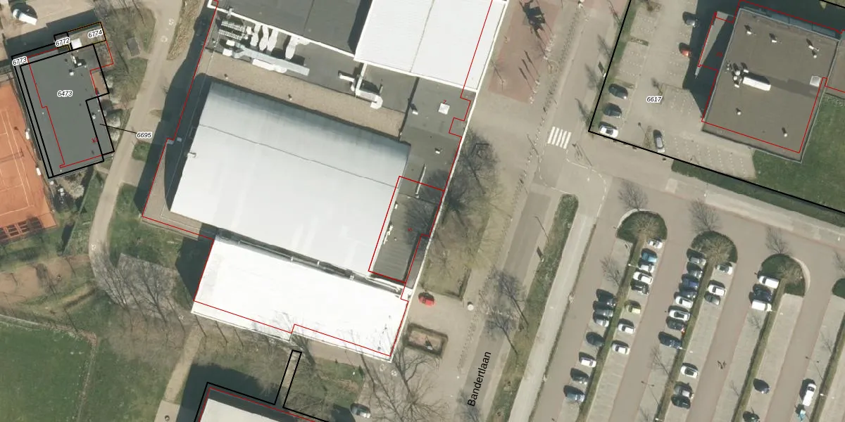 Het perceel waarop Bandertlaan 5 staat heeft een oppervlakte van 21,0 ha. Dit is een zeer groot perceel. De perceeloppervlakte wordt geregistreerd door het Kadaster. Gedetailleerde informatie over de maten van dit perceel kunt u vinden in het rapport Kadastrale kaart met maatvoering van Bandertlaan 5.