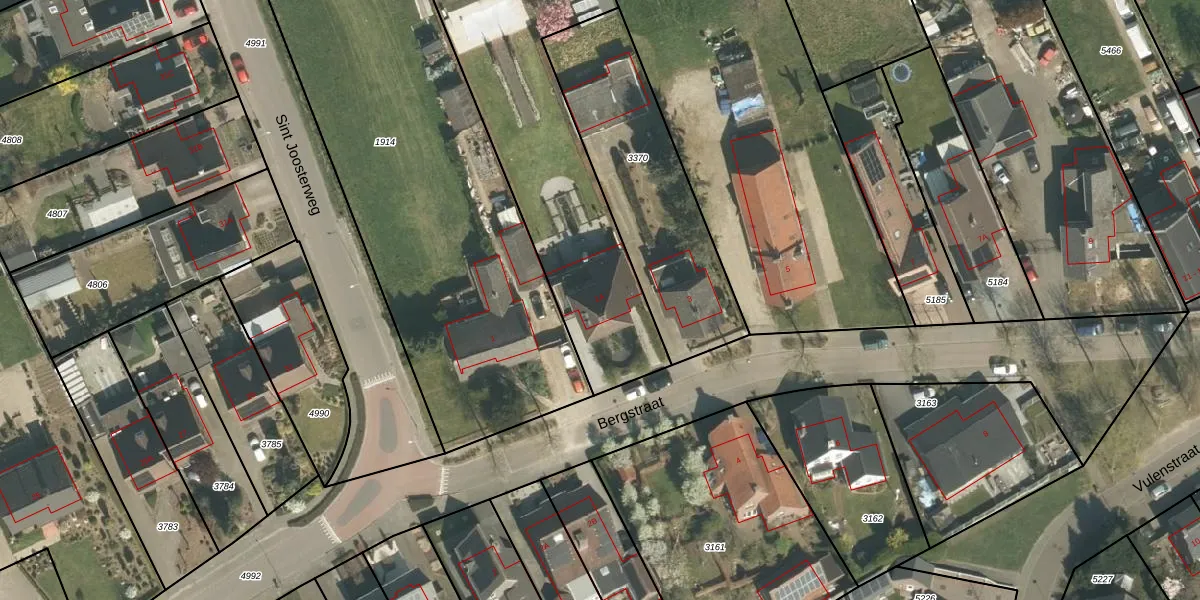 Het perceel waarop Bergstraat 1-A staat heeft een oppervlakte van 1956 m². Dit is een zeer groot perceel. De perceeloppervlakte wordt geregistreerd door het Kadaster. Gedetailleerde informatie over de maten van dit perceel kunt u vinden in het rapport Kadastrale kaart met maatvoering van Bergstraat 1-A.