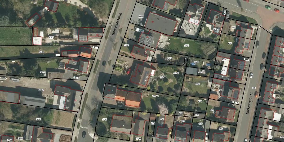 Het perceel waarop Berkelaarsweg 22 staat heeft een oppervlakte van 1050 m². Dit is een zeer groot perceel. De perceeloppervlakte wordt geregistreerd door het Kadaster. Gedetailleerde informatie over de maten van dit perceel kunt u vinden in het rapport Kadastrale kaart met maatvoering van Berkelaarsweg 22.