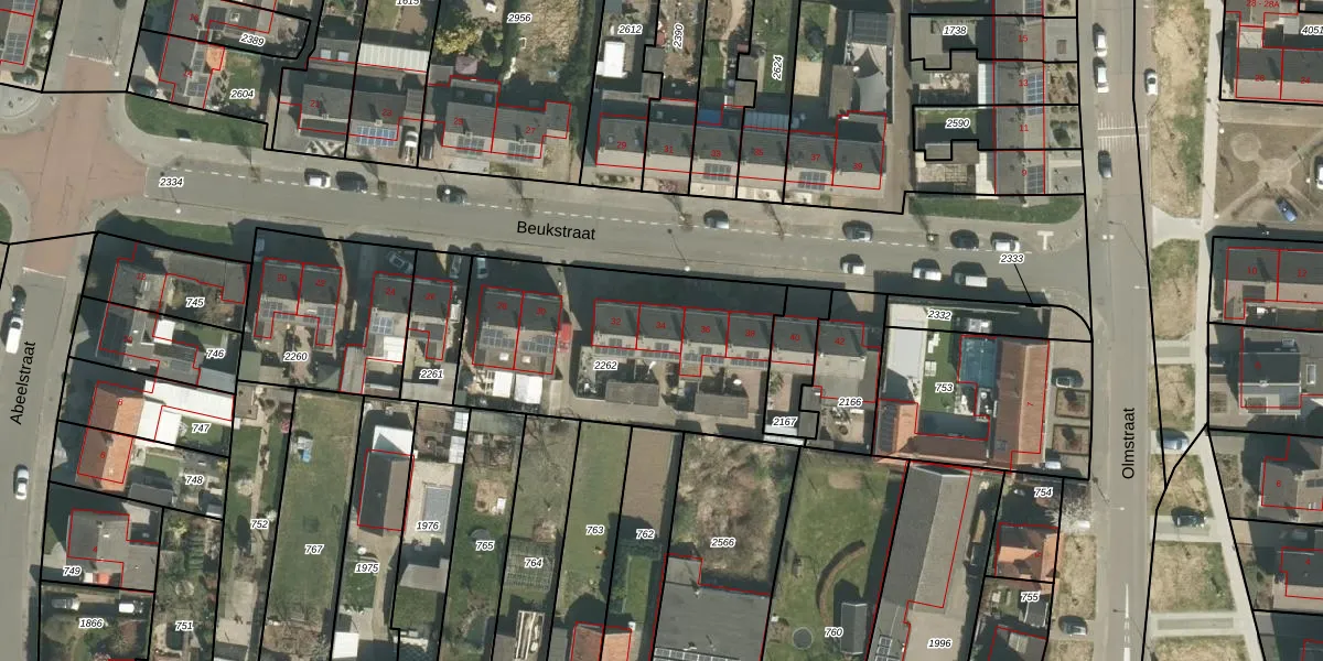 Beukstraat 34 is gelegen op kadastraal perceel ECH00M2262. Deze kadastrale aanduiding is uniek en wordt gebruikt door het Kadaster om eigendomsrechten en andere zakelijke rechten vast te leggen. Het perceel maakt onderdeel uit van de kadastrale gemeente Echt.