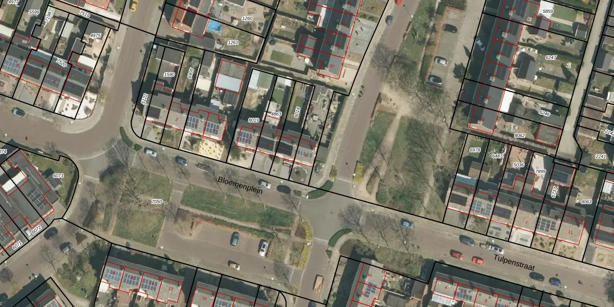 Het perceel waarop Bloemenplein 8 staat heeft een oppervlakte van 3908 m². Dit is een zeer groot perceel. De perceeloppervlakte wordt geregistreerd door het Kadaster. Gedetailleerde informatie over de maten van dit perceel kunt u vinden in het rapport Kadastrale kaart met maatvoering van Bloemenplein 8.