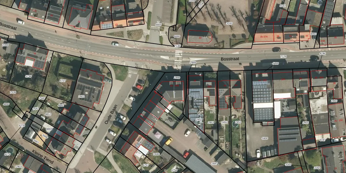 Het perceel waarop Bosstraat 24 staat heeft een oppervlakte van 355 m². Dit is een groot perceel. De perceeloppervlakte wordt geregistreerd door het Kadaster. Gedetailleerde informatie over de maten van dit perceel kunt u vinden in het rapport Kadastrale kaart met maatvoering van Bosstraat 24.