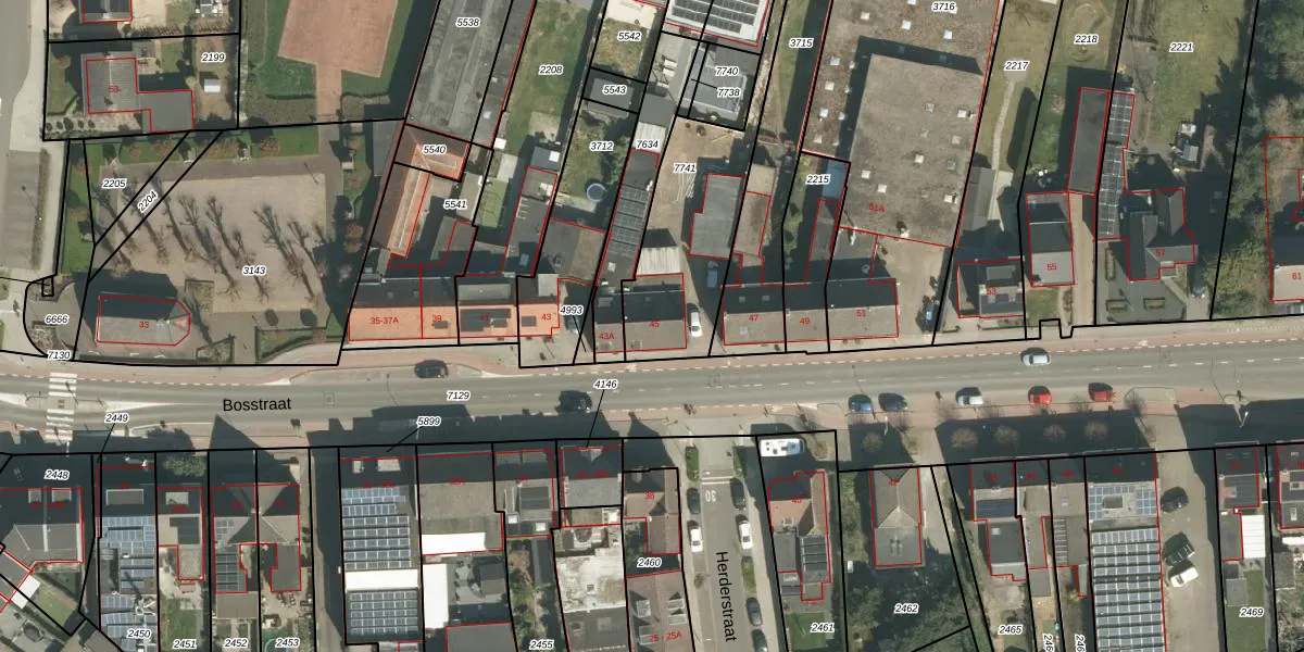 Bosstraat 45 is gelegen op kadastraal perceel ECH00K7741. Deze kadastrale aanduiding is uniek en wordt gebruikt door het Kadaster om eigendomsrechten en andere zakelijke rechten vast te leggen. Het perceel maakt onderdeel uit van de kadastrale gemeente Echt.