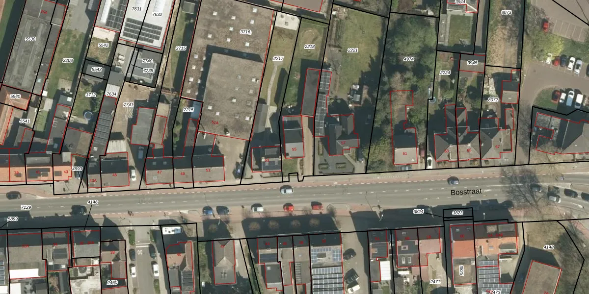 Het perceel waarop Bosstraat 55 staat heeft een oppervlakte van 594 m². Dit is een groot perceel. De perceeloppervlakte wordt geregistreerd door het Kadaster. Gedetailleerde informatie over de maten van dit perceel kunt u vinden in het rapport Kadastrale kaart met maatvoering van Bosstraat 55.