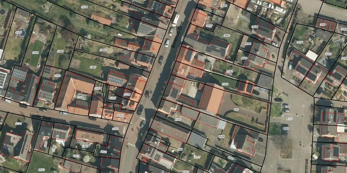 Het perceel waarop Bovenste Eind 15 staat heeft een oppervlakte van 1025 m². Dit is een zeer groot perceel. De perceeloppervlakte wordt geregistreerd door het Kadaster. Gedetailleerde informatie over de maten van dit perceel kunt u vinden in het rapport Kadastrale kaart met maatvoering van Bovenste Eind 15.