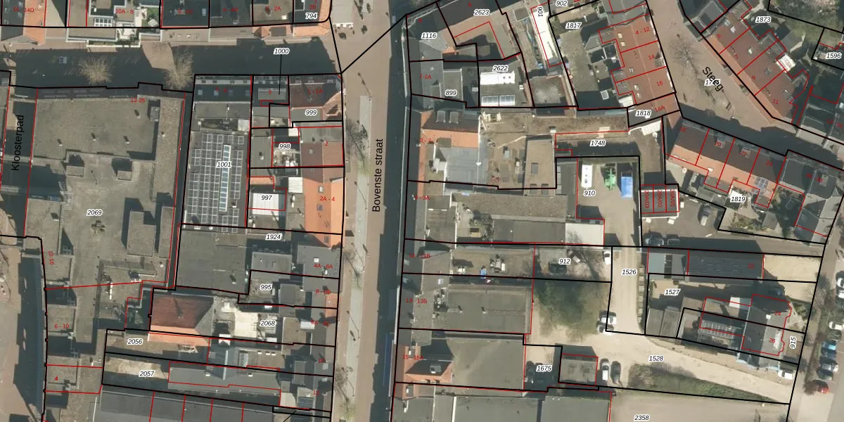 Bovenste straat 9 is gelegen op kadastraal perceel ECH00M910. Deze kadastrale aanduiding is uniek en wordt gebruikt door het Kadaster om eigendomsrechten en andere zakelijke rechten vast te leggen. Het perceel maakt onderdeel uit van de kadastrale gemeente Echt.