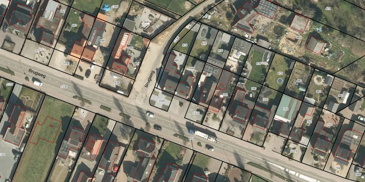 Brugweg 63-A is gelegen op kadastraal perceel ECH00AA696. Deze kadastrale aanduiding is uniek en wordt gebruikt door het Kadaster om eigendomsrechten en andere zakelijke rechten vast te leggen. Het perceel maakt onderdeel uit van de kadastrale gemeente Echt.