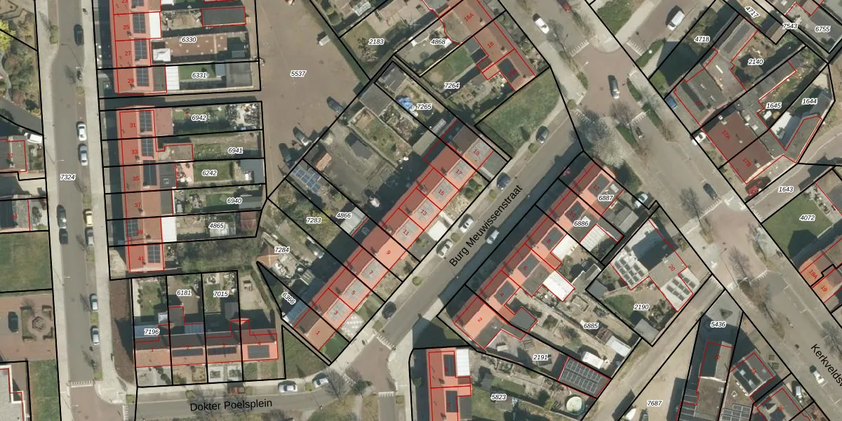 Het perceel waarop Burg Meuwissenstraat 13 staat heeft een oppervlakte van 1413 m². Dit is een zeer groot perceel. De perceeloppervlakte wordt geregistreerd door het Kadaster. Gedetailleerde informatie over de maten van dit perceel kunt u vinden in het rapport Kadastrale kaart met maatvoering van Burg Meuwissenstraat 13.
