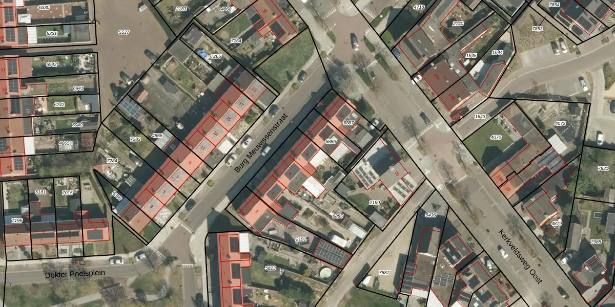Het perceel waarop Burg Meuwissenstraat 8 staat heeft een oppervlakte van 810 m². Dit is een groot perceel. De perceeloppervlakte wordt geregistreerd door het Kadaster. Gedetailleerde informatie over de maten van dit perceel kunt u vinden in het rapport Kadastrale kaart met maatvoering van Burg Meuwissenstraat 8.