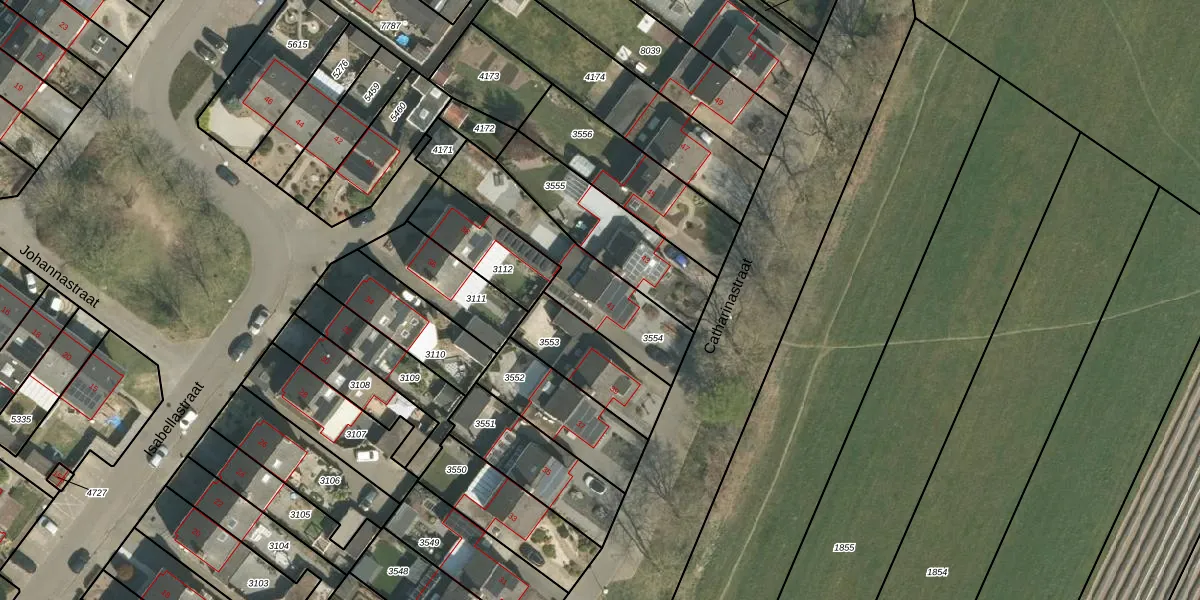 Het perceel waarop Catharinastraat 41 staat heeft een oppervlakte van 412 m². Dit is een groot perceel. De perceeloppervlakte wordt geregistreerd door het Kadaster. Gedetailleerde informatie over de maten van dit perceel kunt u vinden in het rapport Kadastrale kaart met maatvoering van Catharinastraat 41.