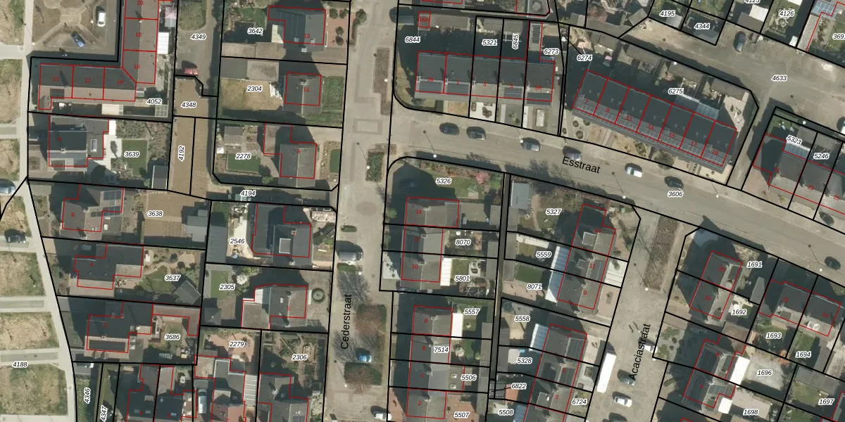 Gebruik de zoekbalk of klik op een perceel voor informatie over de adressen binnen dit perceel.