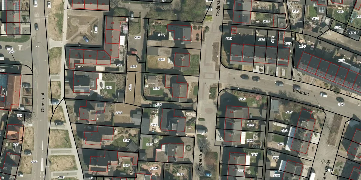 Cederstraat 9 is gelegen op kadastraal perceel ECH00K2278. Deze kadastrale aanduiding is uniek en wordt gebruikt door het Kadaster om eigendomsrechten en andere zakelijke rechten vast te leggen. Het perceel maakt onderdeel uit van de kadastrale gemeente Echt.