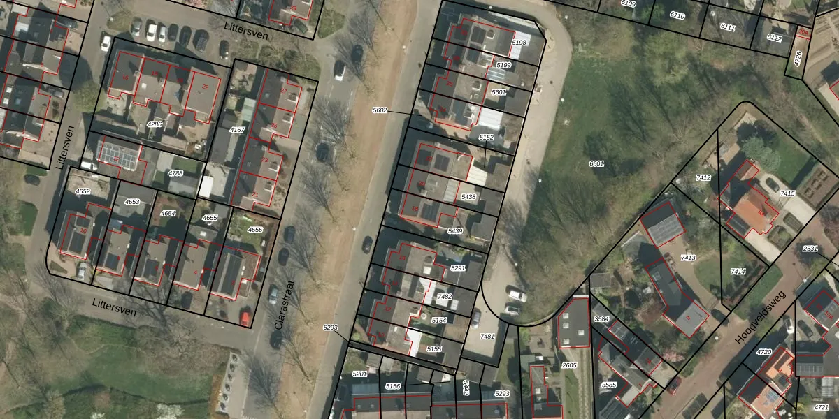 Clarastraat 18 is gelegen op kadastraal perceel ECH00K5439. Deze kadastrale aanduiding is uniek en wordt gebruikt door het Kadaster om eigendomsrechten en andere zakelijke rechten vast te leggen. Het perceel maakt onderdeel uit van de kadastrale gemeente Echt.