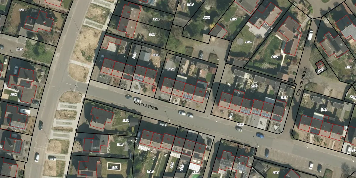 Het perceel waarop Cypresstraat 88 staat heeft een oppervlakte van 1462 m². Dit is een zeer groot perceel. De perceeloppervlakte wordt geregistreerd door het Kadaster. Gedetailleerde informatie over de maten van dit perceel kunt u vinden in het rapport Kadastrale kaart met maatvoering van Cypresstraat 88.