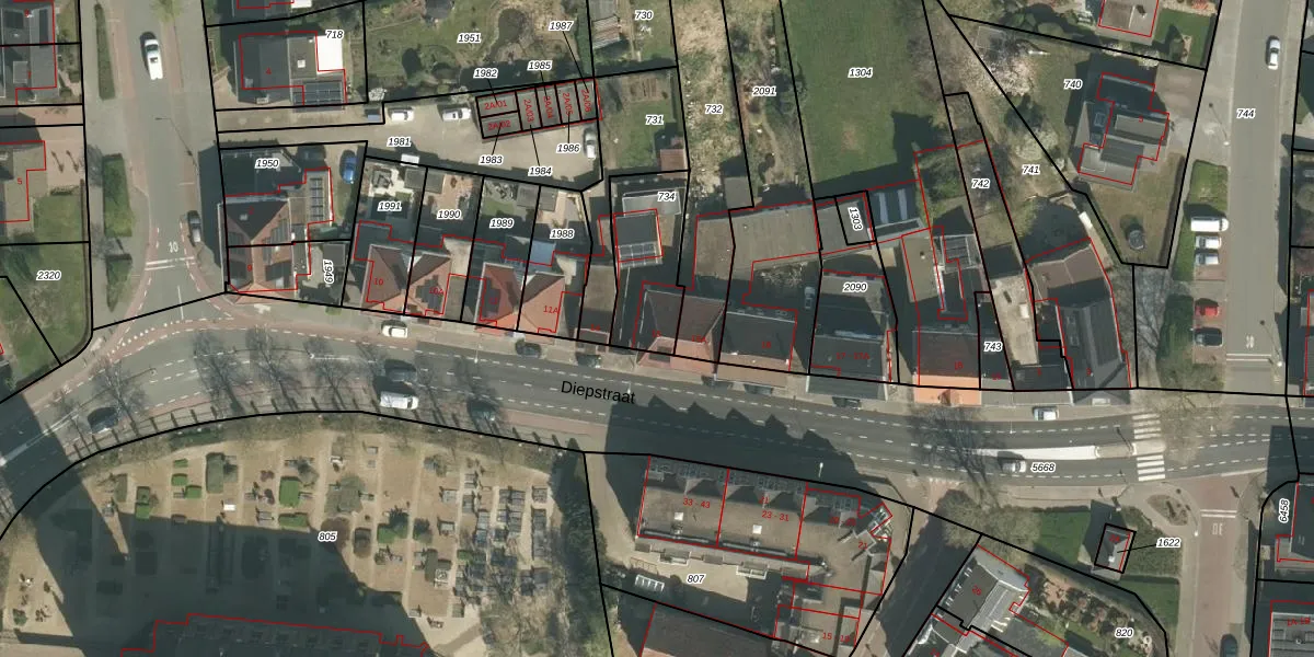 Het perceel waarop Diepstraat 15 staat heeft een oppervlakte van 285 m². Dit is een middelgroot perceel. De perceeloppervlakte wordt geregistreerd door het Kadaster. Gedetailleerde informatie over de maten van dit perceel kunt u vinden in het rapport Kadastrale kaart met maatvoering van Diepstraat 15.