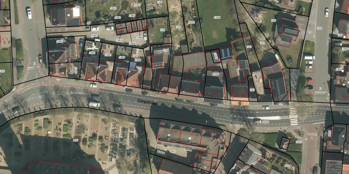Het perceel waarop Diepstraat 15-A staat heeft een oppervlakte van 540 m². Dit is een groot perceel. De perceeloppervlakte wordt geregistreerd door het Kadaster. Gedetailleerde informatie over de maten van dit perceel kunt u vinden in het rapport Kadastrale kaart met maatvoering van Diepstraat 15-A.
