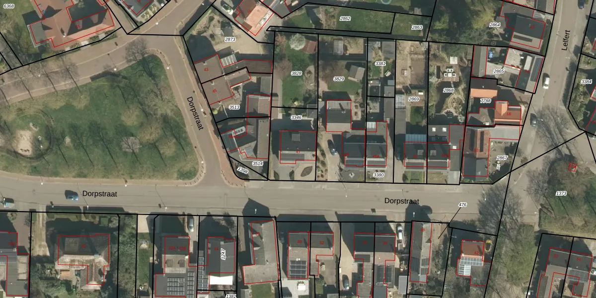 Het perceel waarop Dorpstraat 47 staat heeft een oppervlakte van 384 m². Dit is een groot perceel. De perceeloppervlakte wordt geregistreerd door het Kadaster. Gedetailleerde informatie over de maten van dit perceel kunt u vinden in het rapport Kadastrale kaart met maatvoering van Dorpstraat 47.