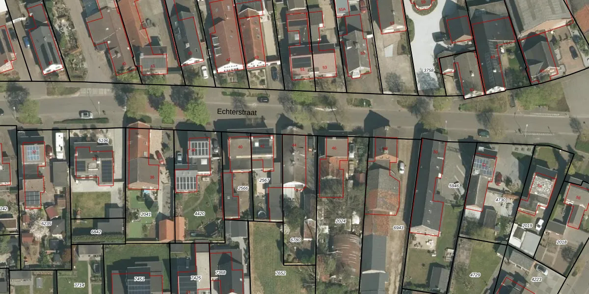 Echterstraat 44 is gelegen op kadastraal perceel ECH00K6780. Deze kadastrale aanduiding is uniek en wordt gebruikt door het Kadaster om eigendomsrechten en andere zakelijke rechten vast te leggen. Het perceel maakt onderdeel uit van de kadastrale gemeente Echt.