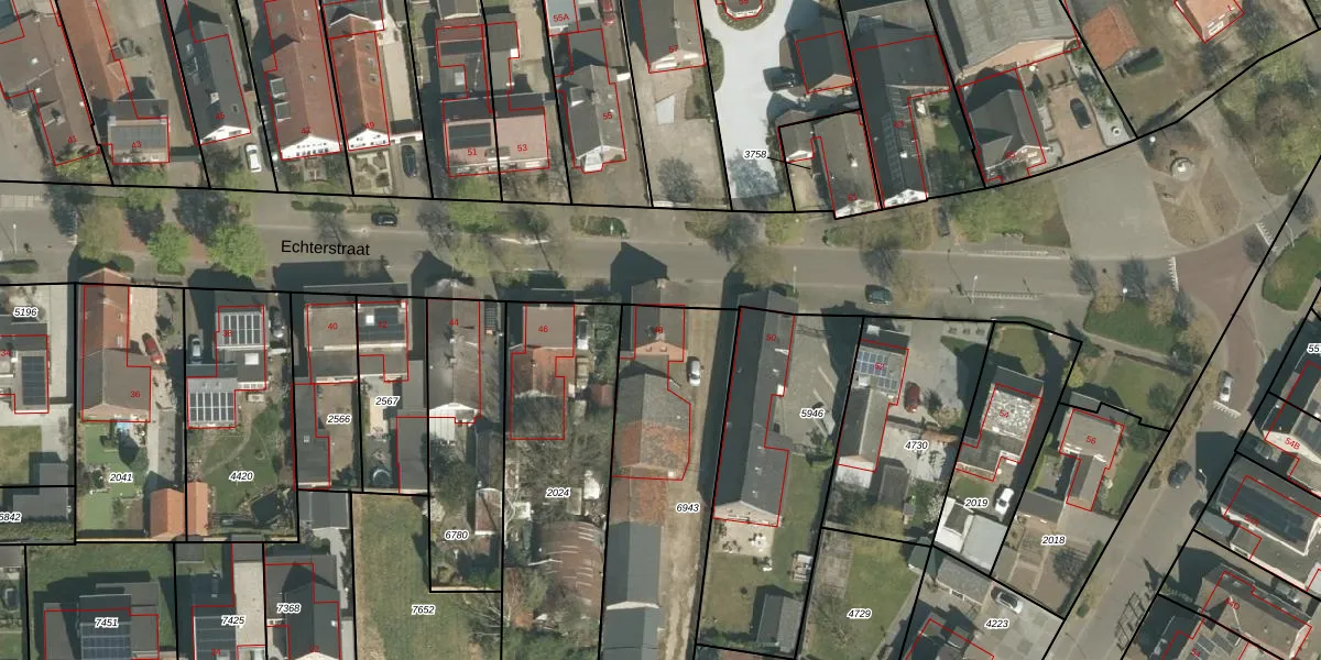 Echterstraat 48 is gelegen op kadastraal perceel ECH00K6943. Deze kadastrale aanduiding is uniek en wordt gebruikt door het Kadaster om eigendomsrechten en andere zakelijke rechten vast te leggen. Het perceel maakt onderdeel uit van de kadastrale gemeente Echt.