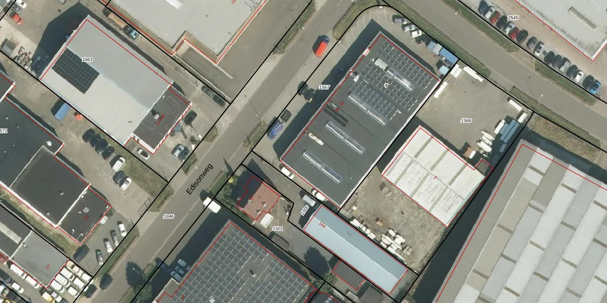 Het perceel waarop Edisonweg 16 staat heeft een oppervlakte van 2277 m². Dit is een zeer groot perceel. De perceeloppervlakte wordt geregistreerd door het Kadaster. Gedetailleerde informatie over de maten van dit perceel kunt u vinden in het rapport Kadastrale kaart met maatvoering van Edisonweg 16.
