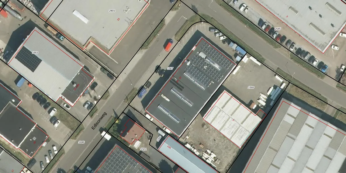 Het perceel waarop Edisonweg 18 staat heeft een oppervlakte van 2277 m². Dit is een zeer groot perceel. De perceeloppervlakte wordt geregistreerd door het Kadaster. Gedetailleerde informatie over de maten van dit perceel kunt u vinden in het rapport Kadastrale kaart met maatvoering van Edisonweg 18.