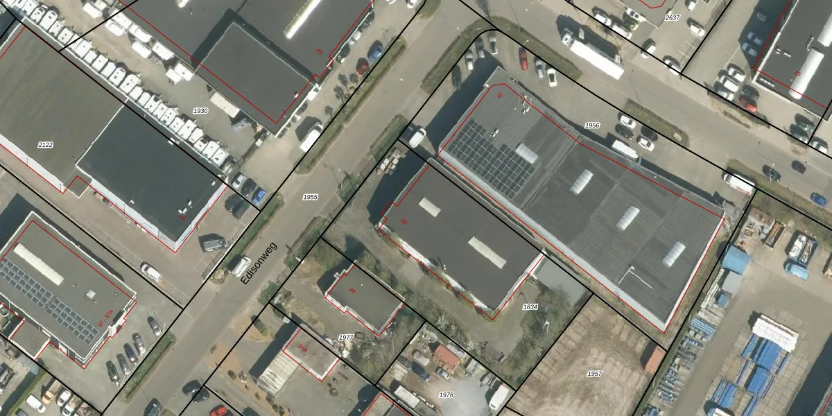 Het perceel waarop Edisonweg 38 staat heeft een oppervlakte van 1800 m². Dit is een zeer groot perceel. De perceeloppervlakte wordt geregistreerd door het Kadaster. Gedetailleerde informatie over de maten van dit perceel kunt u vinden in het rapport Kadastrale kaart met maatvoering van Edisonweg 38.