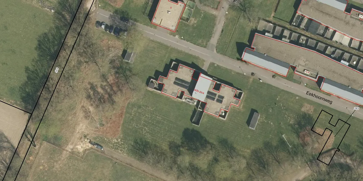 Het perceel waarop Eekhoornweg 2-K-4 staat heeft een oppervlakte van 19,9 ha. Dit is een zeer groot perceel. De perceeloppervlakte wordt geregistreerd door het Kadaster. Gedetailleerde informatie over de maten van dit perceel kunt u vinden in het rapport Kadastrale kaart met maatvoering van Eekhoornweg 2-K-4.