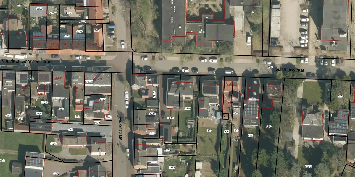 Het perceel waarop Gasthuisstraat 46 staat heeft een oppervlakte van 435 m². Dit is een groot perceel. De perceeloppervlakte wordt geregistreerd door het Kadaster. Gedetailleerde informatie over de maten van dit perceel kunt u vinden in het rapport Kadastrale kaart met maatvoering van Gasthuisstraat 46.