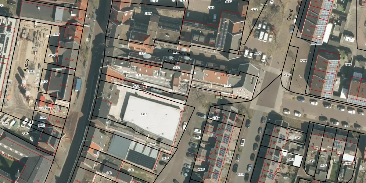 Het perceel waarop Gelrestraat 24-A staat heeft een oppervlakte van 565 m². Dit is een groot perceel. De perceeloppervlakte wordt geregistreerd door het Kadaster. Gedetailleerde informatie over de maten van dit perceel kunt u vinden in het rapport Kadastrale kaart met maatvoering van Gelrestraat 24-A.