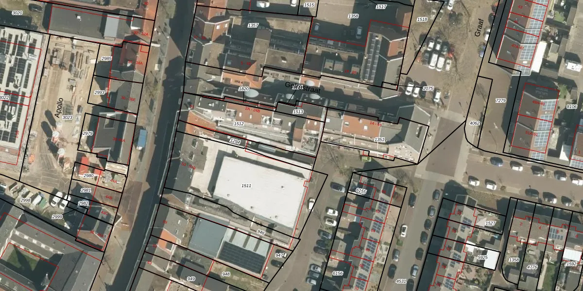 Het perceel waarop Gelrestraat 24-B staat heeft een oppervlakte van 565 m². Dit is een groot perceel. De perceeloppervlakte wordt geregistreerd door het Kadaster. Gedetailleerde informatie over de maten van dit perceel kunt u vinden in het rapport Kadastrale kaart met maatvoering van Gelrestraat 24-B.