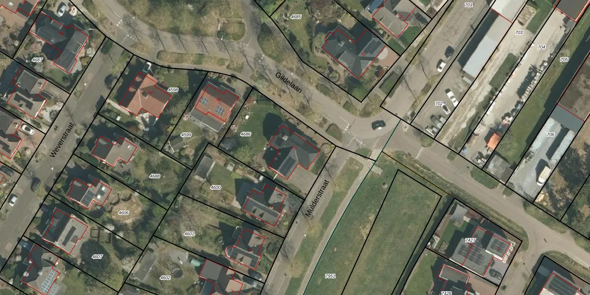 Het perceel waarop Gildelaan 30 staat heeft een oppervlakte van 772 m². Dit is een groot perceel. De perceeloppervlakte wordt geregistreerd door het Kadaster. Gedetailleerde informatie over de maten van dit perceel kunt u vinden in het rapport Kadastrale kaart met maatvoering van Gildelaan 30.