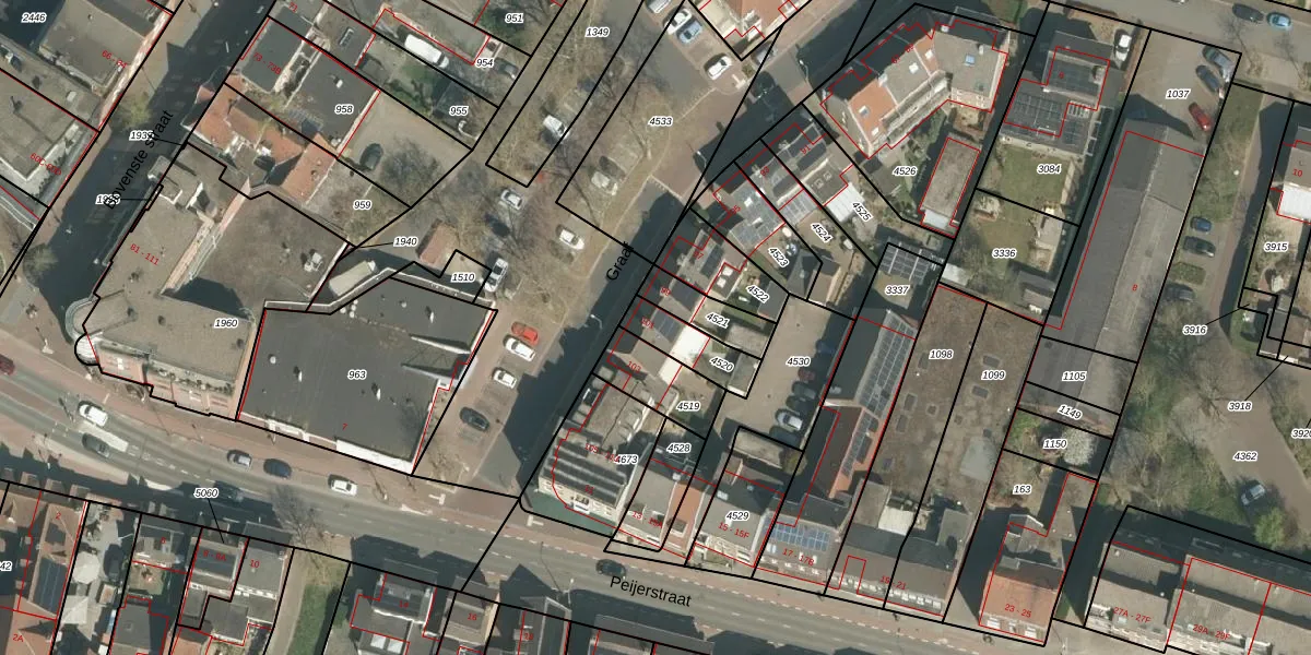 Het perceel waarop Graaf 101 staat heeft een oppervlakte van 125 m². Dit is een middelgroot perceel. De perceeloppervlakte wordt geregistreerd door het Kadaster. Gedetailleerde informatie over de maten van dit perceel kunt u vinden in het rapport Kadastrale kaart met maatvoering van Graaf 101.