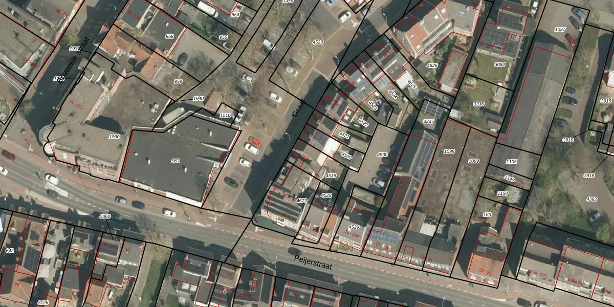 Gebruik de zoekbalk of klik op een perceel voor informatie over de adressen binnen dit perceel.
