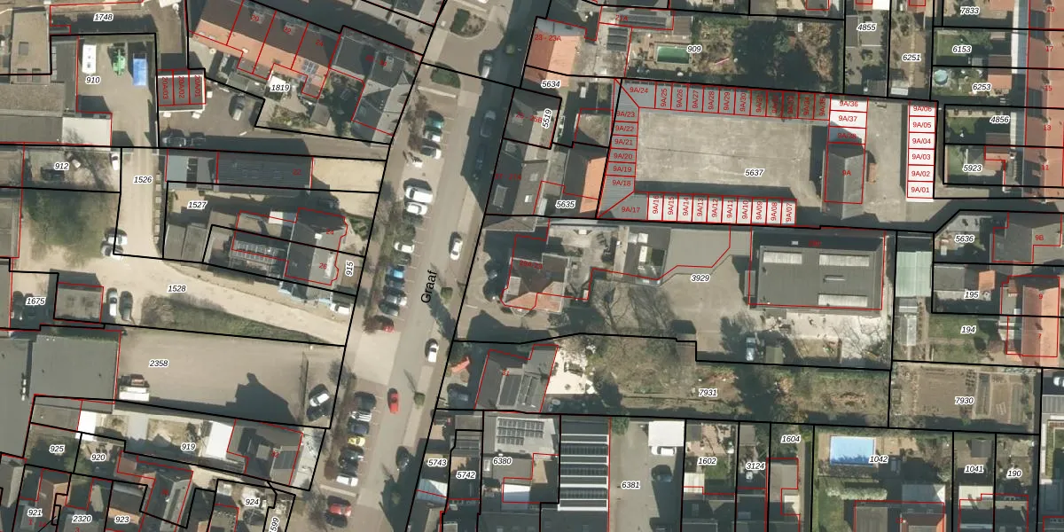 Het perceel waarop Graaf 29 staat heeft een oppervlakte van 1935 m². Dit is een zeer groot perceel. De perceeloppervlakte wordt geregistreerd door het Kadaster. Gedetailleerde informatie over de maten van dit perceel kunt u vinden in het rapport Kadastrale kaart met maatvoering van Graaf 29.