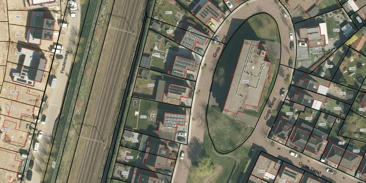 Grote Tiend 38 is gelegen op kadastraal perceel ECH00K6500. Deze kadastrale aanduiding is uniek en wordt gebruikt door het Kadaster om eigendomsrechten en andere zakelijke rechten vast te leggen. Het perceel maakt onderdeel uit van de kadastrale gemeente Echt.