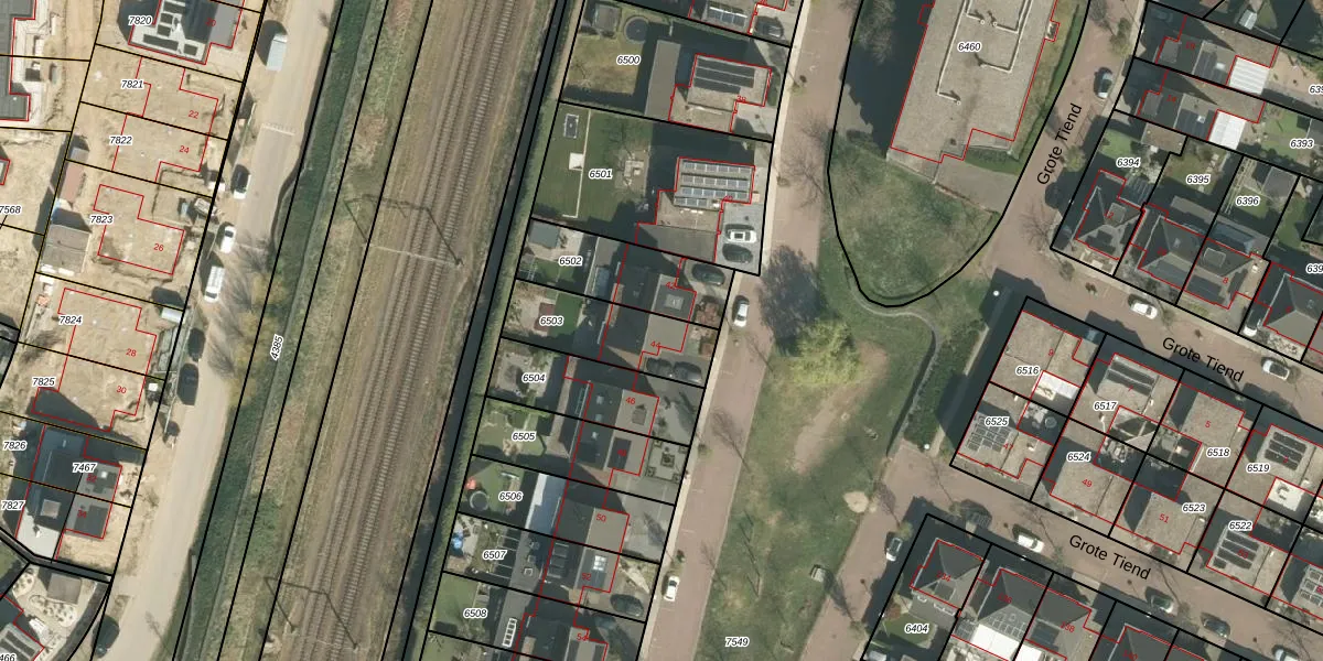 Grote Tiend 44 is gelegen op kadastraal perceel ECH00K6503. Deze kadastrale aanduiding is uniek en wordt gebruikt door het Kadaster om eigendomsrechten en andere zakelijke rechten vast te leggen. Het perceel maakt onderdeel uit van de kadastrale gemeente Echt.