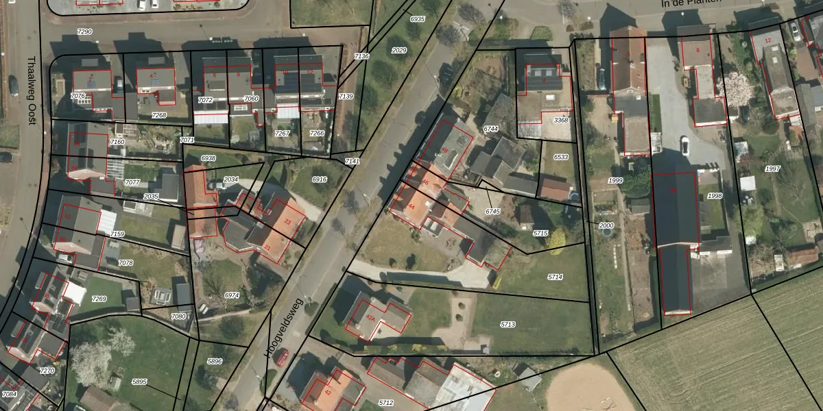 Hoogveldsweg 44 is gelegen op kadastraal perceel ECH00K5714. Deze kadastrale aanduiding is uniek en wordt gebruikt door het Kadaster om eigendomsrechten en andere zakelijke rechten vast te leggen. Het perceel maakt onderdeel uit van de kadastrale gemeente Echt.