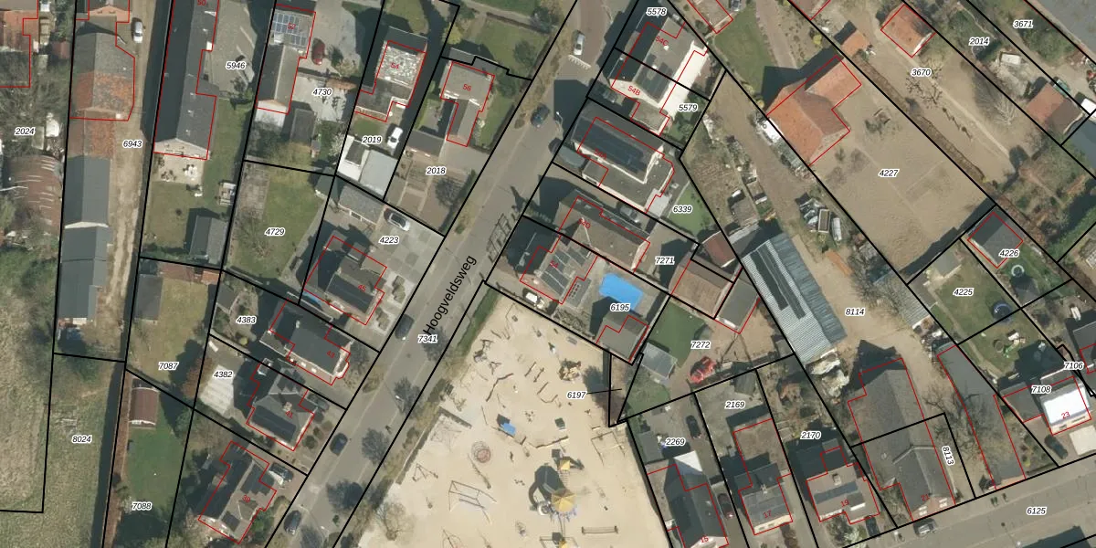Hoogveldsweg 54 is gelegen op kadastraal perceel ECH00K6195. Deze kadastrale aanduiding is uniek en wordt gebruikt door het Kadaster om eigendomsrechten en andere zakelijke rechten vast te leggen. Het perceel maakt onderdeel uit van de kadastrale gemeente Echt.