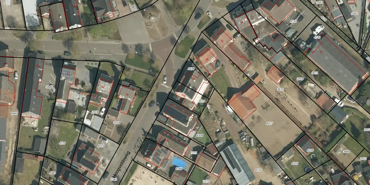 Hoogveldsweg 54-B is gelegen op kadastraal perceel ECH00K5579. Deze kadastrale aanduiding is uniek en wordt gebruikt door het Kadaster om eigendomsrechten en andere zakelijke rechten vast te leggen. Het perceel maakt onderdeel uit van de kadastrale gemeente Echt.