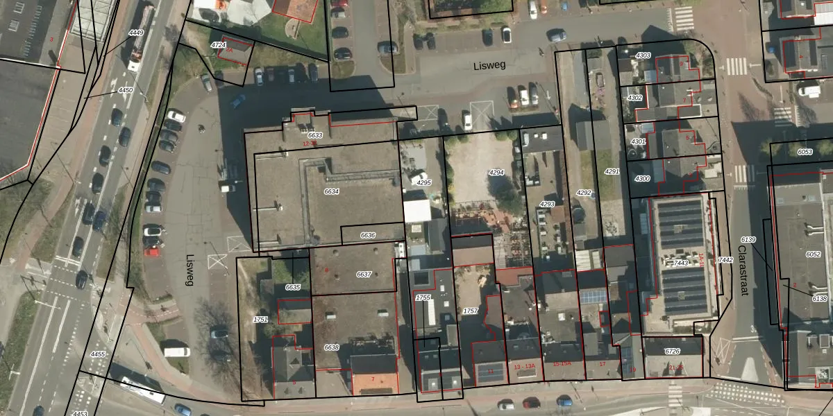 Gebruik de zoekbalk of klik op een perceel voor informatie over de adressen binnen dit perceel.
