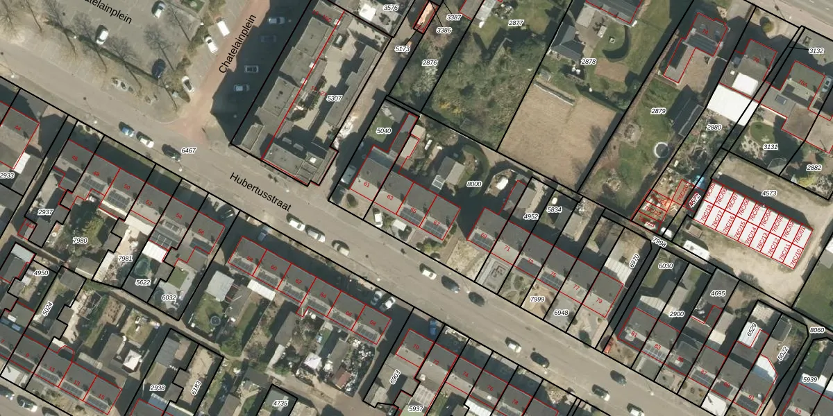 Het perceel waarop Hubertusstraat 65 staat heeft een oppervlakte van 952 m². Dit is een groot perceel. De perceeloppervlakte wordt geregistreerd door het Kadaster. Gedetailleerde informatie over de maten van dit perceel kunt u vinden in het rapport Kadastrale kaart met maatvoering van Hubertusstraat 65.